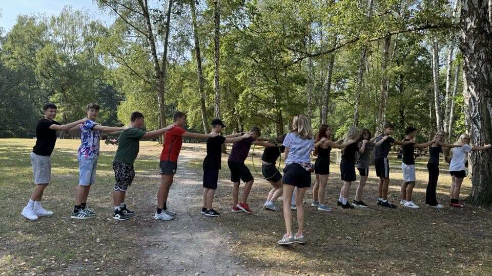 5 września 2025 r. wszystkie klasy pierwsze wraz z wychowawcami – Panią Ewą Żołnierzak-Gwiazdą, Panią Martą Michałowską, Panią Katarzyną Urbańską, Panem Piotrem Szklanym, Panią Joanną Piotrowską i Panią Kingą Karpińską – wzięły udział w corocznym rajdzie integracyjnym do Parku